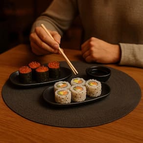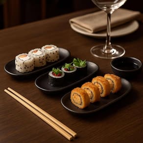 O kit com 40 travessas rasas para sushi da Porto Brasil é a escolha ideal para restaurantes japoneses e buffets que valorizam a apresentação. Com medidas de 16,5x8cm, cada peça é feita em cerâmica com acabamento preto fosco e design orgânico, oferecendo sofisticação e praticidade ao servir pratos orientais. A combinação perfeita entre estilo contemporâneo e funcionalidade para encantar seus clientes e destacar a beleza da culinária japonesa.