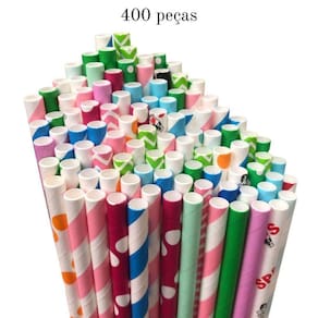 Kit com 400 canudos coloridos de papel biodegradável