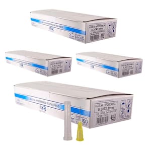 Kit 400un agulha 13x0,30mm 30g para intradermoterapia sr Tamanho: 13x0,30mm 30g Agulha hipodérmica 13x0,30mm sr Projetada para injeções intradérmicas, intramusculares, intravenosas, subcutâneas e coleta sanguínea. Marca: Não Informado