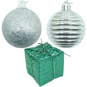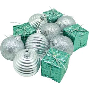 4 Kit Com 11 Pingentes Verde E Prata De 5cm Para Árvore De Natal;