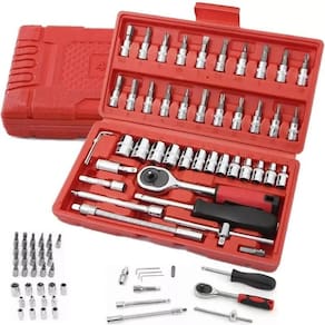 Este kit é sua escolha confiável para uma variedade de tarefas de manutenção, seja em casa, no veículo ou na motocicleta. As ferramentas foram construídas para resistir ao teste do tempo, com materiais superiores, além de apresentar uma catraca de 45 dentes para operação eficiente.