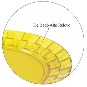 Garantia: 90 dias / Peso de cada: 96g / Cor predominante: amarelo / Ref.: 7794462333419; Dimensões de cada: 19,2cm (D) x 1,5cm (A); Conteúdo: 48 pratos médio; Material: poliestireno.
