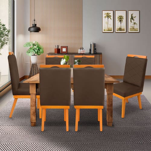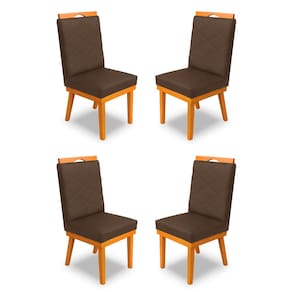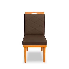kit 4Cadeira Ana Matelassê tecido suede com Base Fixa de Madeira Maciça e Puxador Castanho - Marrom