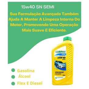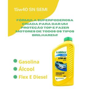 Kit 4 unidades O Óleo Lubrificante 15W40 Lubrax Tecno Semissintético em embalagem de 1 litro é uma solução avançada projetada para oferecer desempenho superior e proteção confiável para uma variedade de motores a gasolina, álcool, flex e diesel. Com sua classificação de viscosidade SAE 15W40, este óleo é formulado para operar eficazmente em uma ampla faixa de temperaturas e condições de funcionamento. Este produto semi-sintético combina óleos básicos refinados com aditivos de última geração, garantindo uma lubrificação excepcional que reduz o desgaste, minimiza o atrito e previne a formação de depósitos prejudiciais no motor. Sua formulação avançada também proporciona excelente estabilidade térmica e resistência à oxidação, mantendo o motor limpo e protegido em todas as situações. Além disso, o Óleo Lubrax Tecno Semissintético é projetado para oferecer uma resposta rápida durante a partida a frio, garantindo uma proteção imediata ao motor, mesmo em condições adversas. Sua embalagem de 1 litro é conveniente e prática, facilitando o manuseio e o armazenamento. Este produto é indicado para uma ampla variedade de veículos, desde carros de passeio até veículos comerciais leves, e é uma escolha confiável para garantir a durabilidade e o desempenho ideal do motor em todas as condições de operação Marca: Não Informado Ean: 7898920508217