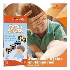 Kit 4 unidades adesivo medidor termo friens babydeas cada caixa contém 4 unidades de adesivo Termo friends: o adesivo monitor de temperatura, uma forma divertida de monitorar a febre e a temperatura corporal sem incomodar a criança. É ativado pelo calor do corpo, pelo método de cristal líquido encapsulado, é extremamente sensível ao calor, ajudando a mãe a cuidar do seu bebê por até 48 horas seguidas. Basta colar o adesivo na testa da criança para obter imediatamente a indicação visual através da graduação que acenderá, sendo: n = neutro, 37/38/39/40 graus centígrados. A embalagem contém 04 unidades e os adesivos são descartáveis. Produto atóxico e hipoalergênico. Marca: Não Informado Ean: 7907135796132