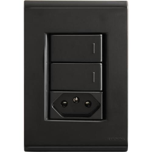 Conjunto 4x2 com 2 Interruptores Simples 10 A 250 V e 1 Tomada 2P T 10 A 250 V Tramontina Liz Grafite