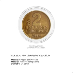 O Kit Acrílico Porta Moedas 3BZN 23mm é um acessório essencial para colecionadores que buscam preservar e exibir suas moedas de forma segura e elegante. Fabricado em acrílico transparente de alta qualidade, este produto oferece uma proteção duradoura contra poeira, quedas e outras influências ambientais que poderiam danificar suas moedas.Seu design inclui uma fenda lateral que permite a abertura e fechamento com segurança, garantindo que a moeda fique firmemente alojada dentro da cápsula. Além de ser resistente, o acrílico utilizado não contém PVC, o que evita possíveis reações químicas que poderiam afetar a integridade das moedas ao longo do tempo.Este porta moedas é ideal para exibir sua coleção, especialmente quando combinado com suportes de madeira ou caixas de MDF, vendidos separadamente. Sua transparência cristalina permite uma visualização clara dos detalhes das moedas, tornando-o uma escolha perfeita tanto para armazenamento quanto para exibição em vitrines ou prateleiras.Com excelente acabamento e durabilidade, O Kit Acrílico Porta Moedas 3BZN é uma peça indispensável para quem leva a numismática a sério, oferecendo tanto proteção quanto sofisticação para a sua coleção?.CARACTERÍSTICASModelo: Fixação por Pressão Material: Acrílico TransparenteDiâmetro: 23mm Marca: PCCB