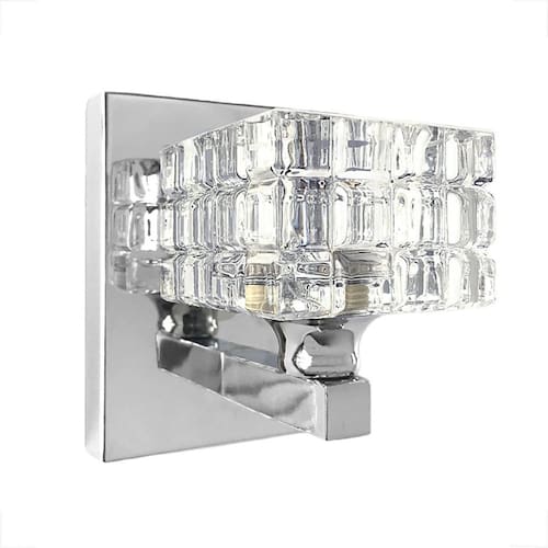 - Materiais: metal e cristal k9. - Dimensões do cristal CxLxA : 7 cm x 7 cm x 4,5 cm - Dimensões da base: Altura: 12 cm Largura: 10 cm Profundidade: 2cm - Profundidade total da arandela: 10,5 cm