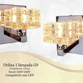 - Soquete: G9 - Tensão: Bivolt - Tipo de lâmpadas: Pode utilizar lâmpada LED ou halógena