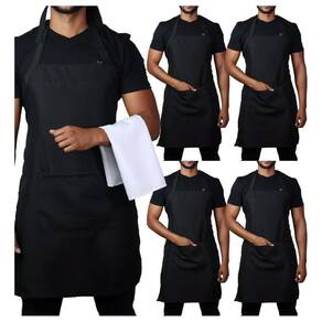Kit 5 Aventais Oxford Preto Ajustável Bolso Garçom Churras