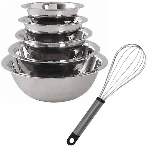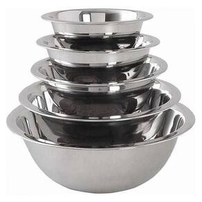 Kit 5 Bacias Tigela Em Inox 17,19, 21,23 e 25cm C/Fouet 24cm Kit contendo 5 Tigelas em inox nas medidas de 17, 19, 21, 23 e 25 cm + Fouet 24 cm A Tigela é produzida em inox, que é um material altamente resistente e que garante mais facilidade na hora de limpar. Para melhor manutenção e conservação do produto, recomenda-se lavar apenas com sabão ou detergente e com uma esponja macia. Fazer o enxague com água abundante e secar imediatamente, a fim de evitar manchas na peça. Ficha Técnica Tigela de 17 cm- Capacidade: 500 ml- Largura Total da Tigela: 17 cm- Altura da Tigela: 4,5 cm- Bordada Tigela: 0,6 cm- Material: Inox Tigela de 19 cm- Capacidade: 800 ml- Largura Total da Tigela: 19 cm- Altura da Tigela: 5,2 cm- Bordada Tigela: 0,6 cm- Material: Inox Tigela de 21 cm- Capacidade: 1 litro- Largura Total da Tigela: 21 cm- Altura da Tigela: 5,8 cm- Bordada Tigela: 0,6 cm- Material: Inox Tigela de 23 cm- Capacidade: 1,3 litros- Largura Total da Tigela: 23 cm- Altura da Tigela: 6,3 cm- Bordada Tigela: 0,7 cm- Material: Inox Tigela de 25 cm- Capacidade: 2 litros- Largura Total da Tigela: 25 cm- Altura da Tigela: 6,2 cm- Bordada Tigela: 0,7 cm- Material: Inox