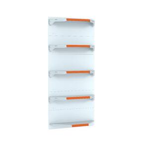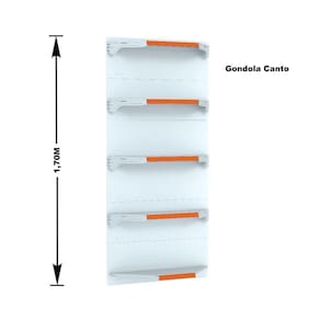 Kit 5 bandejas para gôndola canto 170 amapá premium flex 40/60 cor branco porta etiqueta laranja