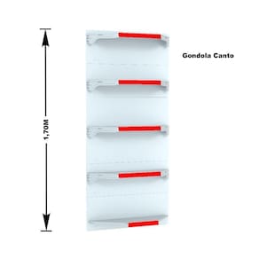 Kit 5 bandejas para gôndola canto 170 amapá premium flex 40/60 cor branco porta etiqueta vermelho