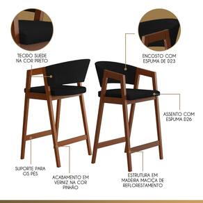 CARACTERÍSTICAS TÉCNICAS: - Produzido em Madeira Maciça; - Acabamento Verniz na Cor Pinhão; - Assento com Espuma D26; - Encosto com Espuma D23; - Revestido em Tecido Suede na Cor Preto.