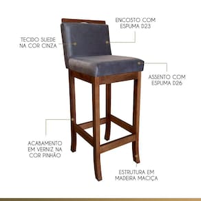 O Kit Banqueta Alta Estofada Turim é um móvel versátil que vai deixar seu ambiente cheio de estilo. Possui um design atual com cores sobreas que pode ser aplicada em diversas composições e decorações. Por causa da sua versatilidade consegue ser utilizada em diferentes ambientes como bancadas altas, espaços gourmet, salão de festas, bares, cantinho do churrasco ou onde você precisar. Seu assento é preenchido com espuma D26, o encosto com espuma D23 e o revestimento é com tecido suede que proporciona conforto e elegância. A Banqueta Turim é produzida com madeira maciça com acabamento em verniz na cor pinhão, garantindo a sua durabilidade. Móveis sofisticados e com alta qualidade, só na CCS Interiores.