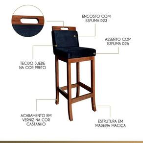 Apresentamos o Kit de Banquetas Alta Milão, uma escolha perfeita para adicionar estilo e conforto à sua bancada ou mesa. Fabricada com madeira maciça de alta qualidade e com acabamento em verniz na cor pinhão, essa banqueta combina durabilidade e sofisticação. Seu assento, preenchido com espuma D26, e encosto, preenchido com espuma D23, oferecem um conforto excepcional. O Revestimento em Tecido Suede na cor preto adiciona um toque de elegância e modernidade ao ambiente. Indicada para bancadas ou mesas com altura entre 90 e 95 cm, a Banqueta Alta Milão se adapta perfeitamente ao seu espaço. Desfrute de momentos agradáveis com estilo e qualidade, escolhendo a Banqueta Alta Milão como destaque na sua decoração.