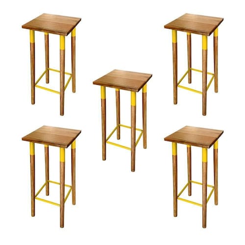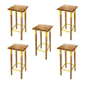 Kit 5 Banquetas Bistro Industrial Colors Ferro E Madeira Maciça - Amarela Amarelo - Blush