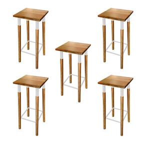 Kit 5 Banquetas Bistro Industrial Colors Ferro e Madeira Maciça - Branca - Marrom