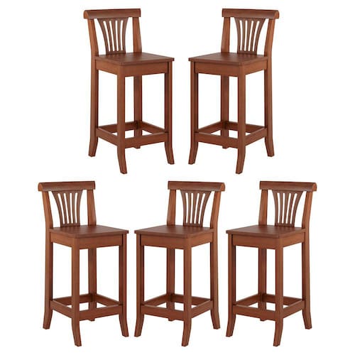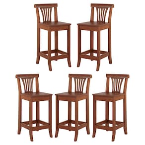 A Banqueta Média Valentina promete ser o centro das atenções em todos os ambientes. Perfeita para bancada de cozinha américa, balcão, mesa bar, espaço gourmet, cantinho do churrasco e muito mais. Possui uma estrutura reforçada em madeira de taeda com acabamento em verniz aumentando a sua durabilidade. Característica do Produto: - Produzida em Madeira Maciça Taeda - Acabamento em Verniz cor Imbuia - Produto Entregue Montado * Kit Composto por 5 Banquetas Dados Técnicos do Produto: - Altura Total: 90 cm - Altura do Encosto: 26 cm - Altura para sentar: 65 cm - Largura Total: 36 cm - Largura do Assento: 40/35 cm - Profundidade Total: 46 cm - Profundidade do Assento: 38 cm - Peso: 8 kg Informações Adicionais: Garantia para defeitos de fabricação conforme Código de Defesa do Consumidor. *Não nos responsabilizamos por subir ou içar o produto. **As imagens ambientadas são meramente ilustrativas e podem apresentar itens que não compõe o produto, as cores do produto podem variar de acordo com o monitor, a iluminação do ambiente ou sua percepção visual. ***Limpeza: Deve ser feita com pano macio e seco ou levemente umedecido com água e sabão neutro. Não devem ser utilizados abrasivos.