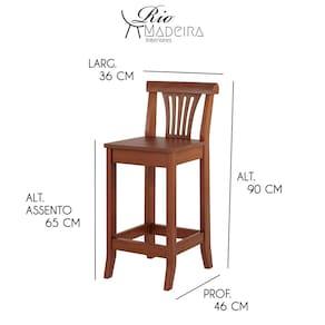 A Banqueta Média Valentina promete ser o centro das atenções em todos os ambientes. Perfeita para bancada de cozinha américa, balcão, mesa bar, espaço gourmet, cantinho do churrasco e muito mais. Possui uma estrutura reforçada em madeira de taeda com acabamento em verniz aumentando a sua durabilidade. O seu ambiente vai ficar muito mais elegante e cheio de charme com os móveis da Rio Madeira Interiores. Característica do Produto: - Produzida em Madeira Maciça Taeda - Acabamento em Verniz cor Imbuia - Produto Entregue Montado * Kit Composto por 5 Banquetas Dados Técnicos do Produto: - Altura Total: 90 cm - Altura do Encosto: 26 cm - Altura para sentar: 65 cm - Largura Total: 36 cm - Largura do Assento: 40/35 cm - Profundidade Total: 46 cm - Profundidade do Assento: 38 cm - Peso: 8 kg Embalagem do Produto: Altura Total: 100,5 cm Largura: 50 cm Profundidade: 40 cm Peso: 12 kg Cubagem: 0,210 m³ Informações Adicionais: Garantia para defeitos de fabricação conforme Código de Defesa do Consumidor. *ATENÇÃO: Entregas são feitas em horário comercial. Não nos responsabilizamos pela montagem, subir ou içar o móvel. **As imagens ambientadas são meramente ilustrativas e podem apresentar itens que não compõe o produto, as cores do produto podem variar de acordo com o monitor, a iluminação do ambiente ou sua percepção visual. ***Limpeza: Deve ser feita com pano macio e seco ou levemente umedecido com água e sabão neutro. Não devem ser utilizados abrasivos.