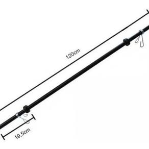 Cor: preto Fixação: presilhas Tamanho: 120 cm Tudo de 1 polegada Diâmetro: 25 mm Espessura 1,2 mm Itens inclusos: 05 barra de pump - 10 presilhas para anilhas Garantia: 3 meses contra defeito de fábrica