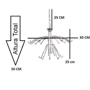 Altura total: 50 cm 25 cm do corpo + 25 cm de corrente ajustável