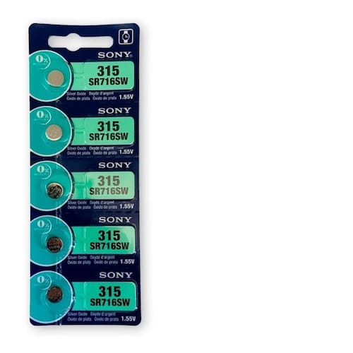 5 bateria sony 315 sr716sw relógio 5 bateria sony 315 sr716sw relógio Atenção sony agora é murata A empresa japonesa murata comprou a divisão de pilhas da sony Continua com a mesma embalagem e a mesma qualidade, porém, com a marca murata Modelo - 315 sr716sw Marca sony murata Quantidade 5 unidade Tensão nominal 1,55v Baterias sony, baterias relógio, baterias sony relógio, baterias camera, baterias controle, sony controle, sony relógio, sony camera Aplicações: Relógio de tempo real para arduino Diversos modelos de controles remotos, computadores, câmeras digitais, relógios, enfim a sua necessidade e que vai dar a aplicação final a bateria. Características Bateria botão Pilha moeda Lithium de alta durabilidade Ideal para módulos relógio tempo real Utilização geral Embalagem 5 bateria sony 315 sr716sw relógio 90 dias Marca: Não Informado