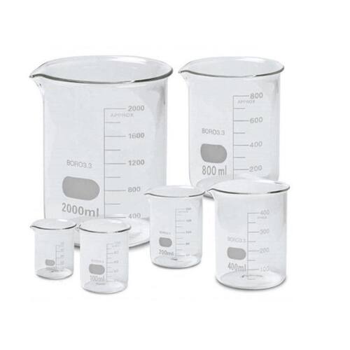 Kit 5 becker bequer graduado de vidro 25ml Becker de vidro forma baixa graduado 25ml bequer - caixa com 5 unidades
