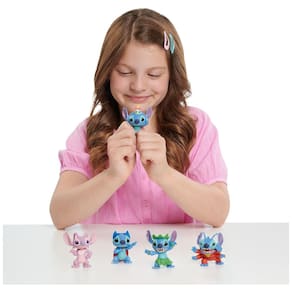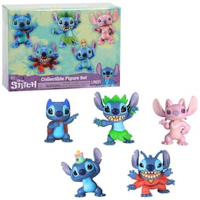 Leve para casa as aventuras de Lilo e Stitch da Disney com o conjunto de figuras colecionáveis Stitch Este conjunto de figuras de cinco peças altamente detalhado apresenta Stitch e Angel. Cada figura tem 7 centímetros de altura e vem em uma pose divertida e expressiva. As crianças podem colecionar Superhero Stitch, Stitch Scrump, Alien Stitch, Hula Stitch e Angel. O conjunto de cinco peças para idades 3 inclui Superhero Stitch, Stitch Scrump, Alien Stitch, Hula Stitch e Angel. Apresenta excelentes detalhes de personagens e vem em tamanho colecionável divertido.