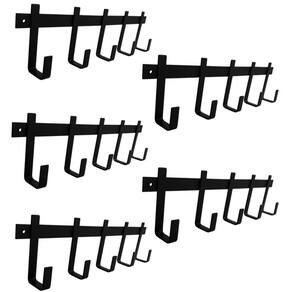 Kit 5 Cabideiros de Parede com 5 Ganchos em Aço Preto para Pendurar Roupas Mochilas Bolsas Guarda Chuva.