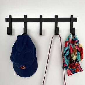Garantia: 90 dias / Peso de cada: 665g / Cor: preto / Ref: 7794463634348; Dimensões de cada: 45cm (C) x 5cm (L) x 12cm (A); Dimensões de cada gancho: 1,5cm (C) x 5cm (L) x 12cm (A); Abertura interna de cada gancho: 4cm; Quantidade de ganchos: 5; Distância entre os parafusos para fixação: 42cm; Peso máximo suportado: 10kg distribuídos uniformemente. Conteúdo: 5 cabideiros de parede; Materiais: pintura epóxi; aço SAE; Detalhes do produto: possui uma camada extra de protetivo aplicado sobre o preto que proporciona grande durabilidade e resistência à corrosão; acompanha parafusos e buchas para instalação; possui cinco ganchos em formato de J; Cuidados e limpeza: lavar com pano levemente umedecido com água, seguido de pano seco; não utilizar produtos químicos ou abrasivos na limpeza; evitar batidas.