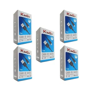 Kit 5 Cabos USB V8 Kingo Preto 1m 2.1A para Galaxy A10s É super resistente, este cabo Micro-USB V8 2.0 conecta seu dispositivo diretamente a seu computador para sincronizar de forma rápida e eficiente seus dados ou carregar seu aparelho. Conecte-se ao computador para sincronização e transferência de dados.