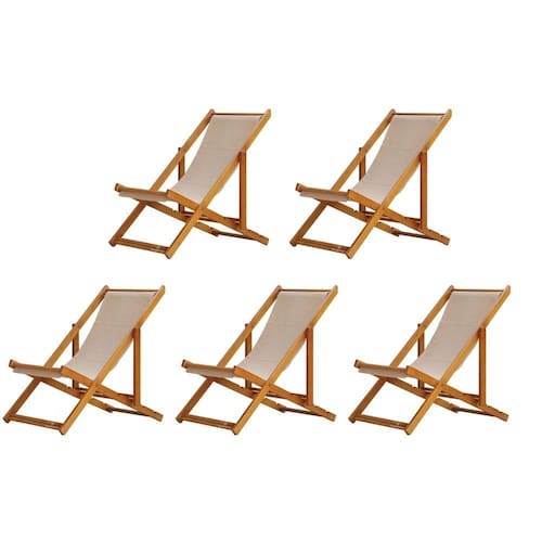 Kit 5 Cadeira Espreguiçadeira Dobrável Mel Sb-bege