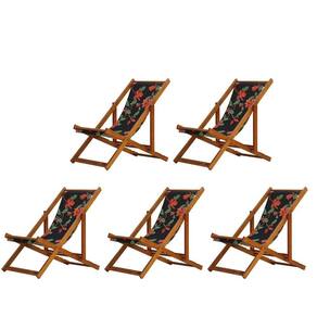 Kit 5 Cadeira Espreguiçadeira Dobrável Mel Sb-preto Flores