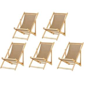Kit 5 Cadeira Madeira Espreguiçadeira Dobrável Sb-bege 5 ESPREGUIÇADEIRAS EM MADEIRA S/BSabe aquele final de tarde que você tanto espera para tirar um descanso merecido? Ou aquela viagem para a praia programada a meses com a família? Pois é, nossas cadeiras espreguiçadeira serve exatamente para esses momentos, com várias opções de cores, os tecidos além de charmosos são hidro-repelentes e se adequam a qualquer ambiente, facilmente removíveis para higienização.Estrutura 100% de madeira maciça de ótima qualidade, a espreguiçadeira é totalmente dobrável e reclinável (4 posições de ângulo), perfeita para seu lazer em todos os ambientes, seja ele externo ou interno, esse é o item que definitivamente não pode faltar na vida de quem de fato, quer aproveitar bons momentos! FICHA TÉCNICA DO PRODUTO:04 Níveis de Regulagem de Altura; Tecido Reforçado; Fabricada em Madeira Maciça Pinus; Peso aproximado: 7,5 Kg; Suporta aproximadamente 120 kg; Cor da Madeira: ; Dimensões aproximadas do Produto: Altura 1: 69 cm; Altura 2: 82 cm; Altura 3: 91 cm; Altura 4: 100 cm; Profundidade: 105 cm. Dimensão aproximada total: Comprimento: 135 cm; Largura: 60 cm; Informações Adicionais:Garantia: 90 dias contra defeitos de fabricação. Obs. A cor pode variar da foto conforme a tonalidade da madeira e iluminação.. !!