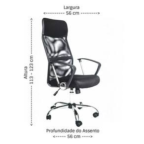 A Cadeira Presidente Comfort é confortável e resistente, trás um designer clássico para o ambiente. Expressa estilo único e qualidade. Assento e encosto em tela (Mesh)Braços de apoio fixos, assento com espuma injetada de alta qualidade, possui mecanismo relax, sistema de amortecedor a Gás, giratória, base em aço cromado.