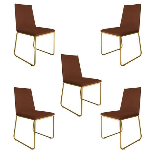 Kit 5 Cadeiras de Jantar Estofada Lille Base Gold Veludo Terracota chegou essa incrível novidade para você, que deseja inovar e decorar o seu espaço com muito Estilo. A Cadeira Lille possui uma matéria-prima de ótima qualidade, garantindo conforto e durabilidade do produto. Possui variações de cores tanto na base e no assento, oferecendo várias opções de escolha para sua decoração.