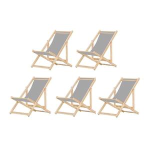 Kit 5 Cadeiras Espreguiçadeira Dobrável Sb-cinza 5 ESPREGUIÇADEIRAS EM MADEIRA S/BSabe aquele final de tarde que você tanto espera para tirar um descanso merecido? Ou aquela viagem para a praia programada a meses com a família? Pois é, nossas cadeiras espreguiçadeira serve exatamente para esses momentos, com várias opções de cores, os tecidos além de charmosos são hidro-repelentes e se adequam a qualquer ambiente, facilmente removíveis para higienização.Estrutura 100% de madeira maciça de ótima qualidade, a espreguiçadeira é totalmente dobrável e reclinável (4 posições de ângulo), perfeita para seu lazer em todos os ambientes, seja ele externo ou interno, esse é o item que definitivamente não pode faltar na vida de quem de fato, quer aproveitar bons momentos! FICHA TÉCNICA DO PRODUTO:04 Níveis de Regulagem de Altura; Tecido Reforçado; Fabricada em Madeira Maciça Pinus; Peso aproximado: 7,5 Kg; Suporta aproximadamente 120 kg; Cor da Madeira: ; Dimensões aproximadas do Produto: Altura 1: 69 cm; Altura 2: 82 cm; Altura 3: 91 cm; Altura 4: 100 cm; Profundidade: 105 cm. Dimensão aproximada total: Comprimento: 135 cm; Largura: 60 cm; Informações Adicionais:Garantia: 90 dias contra defeitos de fabricação. Obs. A cor pode variar da foto conforme a tonalidade da madeira e iluminação.. !!