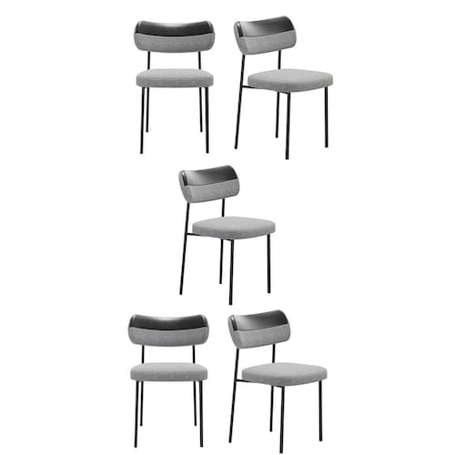 Kit 5 Cadeiras Estofadas Camila Para Sala Jantar Gourmet em Aço Couríssimo e Linho EdeCasaMoveis - Prata