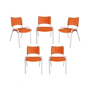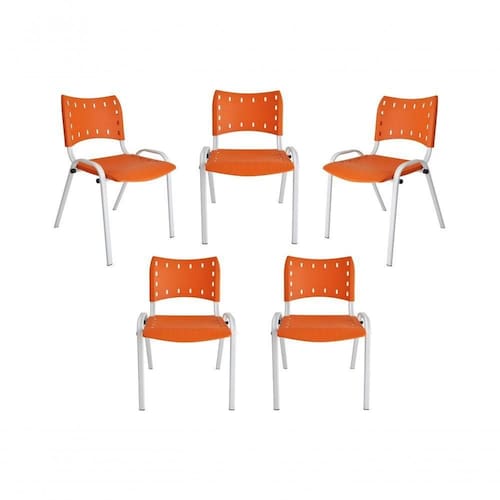 Kit 5 Cadeiras Iso Para Escola Escritório Comércio Laranja Base Branca