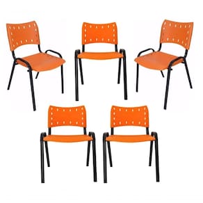 Kit 5 Cadeiras Iso Para Escola Escritório Comércio Laranja Base Preta