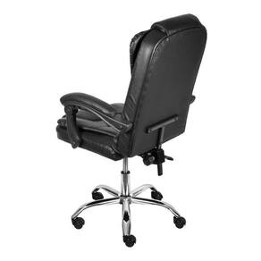 A cadeira Jacarta possui revestimento em PU, sistema relax com travamento, apoio de lombar e braços acolchoados. Base cromada giratória com rodízios PU que não danificam o piso. Cadeira imponente e muito confortável, em função do seu encosto alto. Altura do Conjunto: 107 cm Ambiente: null Ambiente Principal: Escritório Cor: Preto Informação Complementar: 5x Cadeira para Escritório Presidente Estofada Jacarta Preto Largura: 52 cm Altura: 107 cm Peso: 9 kg Profundidade: 78 cm Necessita Montagem: Sim