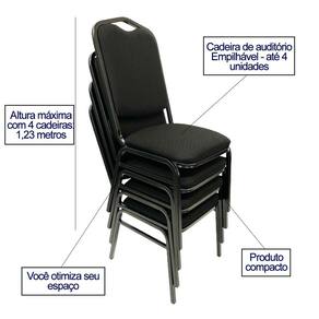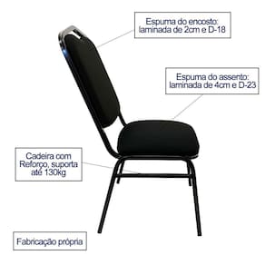 Um dos grandes benefícios dessa cadeira é sua capacidade de empilhamento, o que a torna ideal para ambientes com espaço limitado. Além disso, sua versatilidade permite seu uso em diversos locais, como salas de conferência, centros de eventos, recepções, hotéis, igrejas, escritórios, exposições e teatros. Com uma capacidade de suportar de até 130kg, ela é adequada para diferentes tipos de usuários.