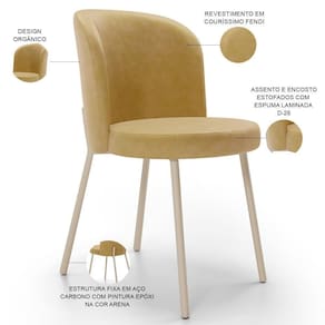 Altura da cadeira: 80 cm | Altura do assento a partir do solo: 46 cm | Color: Bege | ColorFamily: Bege | ColorSimple: Fendi | ColorSupplier: Fendi | Cor: Fendi | Cor da estrutura da cadeira: Arena | Cor do assento: Fendi | Cor do estofamento: Fendi | Desenho do tecido: Liso | É cadeira de balanço: Não | É dobrável: Não | É empilhável: Não | Espessura do assento: na | Fabricante: Lyam Decor | Firmeza: Firmeza | Largura da cadeira: 44 cm | Largura do assento: 42 cm | Material: Estrutura em Aço carbono, Revestimento em Couríssimo e espuma | Material do estofamento: Couríssimo e espuma | MaterialFamily: Aço carbono, couro sintético e espuma | Model: Gavi | OriginCountry: Nacional | OriginState: PR | Peso máximo suportado: 120 kg | ProductContents: 05 Cadeiras | ProductHeight: 81 cm | ProductInstructions: Produto para uso em ambiente interno, nao devendo ficar exposto ao sol, calor e umidade excessivos. | ProductLength: 108 cm | ProductWarranty: 90 dias após o recebimento do produto | ProductWeight: 25 kg | ProductWidth: 135 cm | Profundidade da cadeira: 53 cm | Profundidade do assento: 42 cm | Requer montagem: Não | SizeDescription: Altura: 81 cm x Largura: 135 cm x Profundidade: 108 cm | SupplierSimpleName: Kit 5 Cadeiras Sala de Jantar Estofada Gavi Arena L02 Couríssimo Fendi - Lyam Decor | Tempo de montagem: na