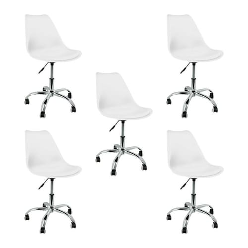 Kit 5 Cadeiras Tulipa Giratória, Home Office, Regulagem de Altura, Branco