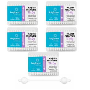 Cotonetes Hastes Flexísiveis Para Bebês Polyfarma - 5 Caixas com 50 Unidades Cada
