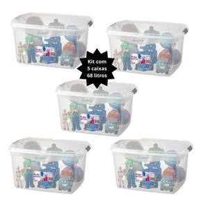 Kit 5 Caixas Organizadora Multiuso 68 Litros Sanremo