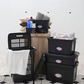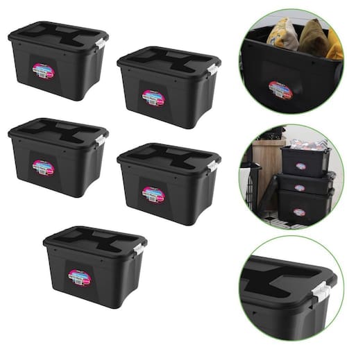 Kit 5 Caixas Organizadoras 56 Litros Com Trava Preta Uninjet Manter a casa sempre em ordem é o sonho de muita gente. Um item que pode nos ajudar nesse momento, tornando tudo mais fácil, simples e bonito, é a Caixa Organizadora. A Caixa Organizadora é um acessório simples, mas que pode transformar a organização e decoração dos ambientes. Seja para guardar documentos, roupas ou louças de cozinha, a Caixa Organizadora é sinal de um ambiente organizado e mais prático para o dia a dia.