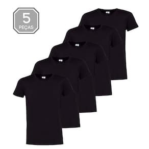 Kit 5 Camisetas De Poliéster/sublimática Gola Redonda Preta