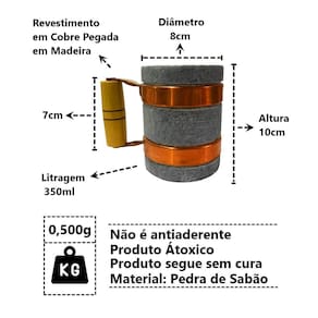 Caneca Alça Cobre e Madeira Pedra Sabão Chopp Cerveja 350ml mantém tanto o calor, quanto o frio, sendo assim, poderá utilizar a caneca para chopp, cerveja, bebidas geladas e quentes.